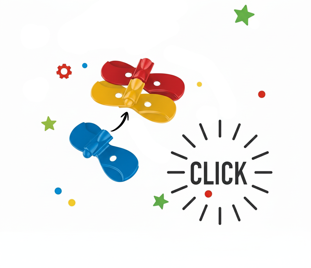 Vandaag een korte race over de vloer, morgen een spannende route onder de tafel door of langs de bank. Playbino FlexiTrack buigt mee met elk idee en daagt kinderen uit om steeds iets nieuws te bouwen. Door te testen, aanpassen en opnieuw te bouwen ontstaat elke keer weer een compleet andere racebaan, en blijft het spel leuk, dag na dag.